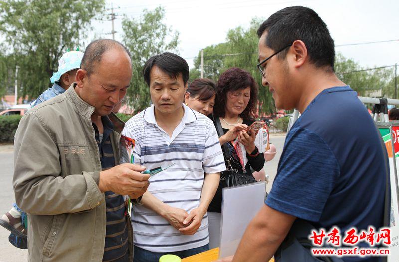 工作人员正在指导群众参与安全知识答题活动