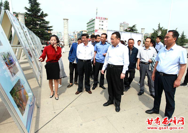 市区领导观看2018年安全生产月启动仪式上的摄影展
